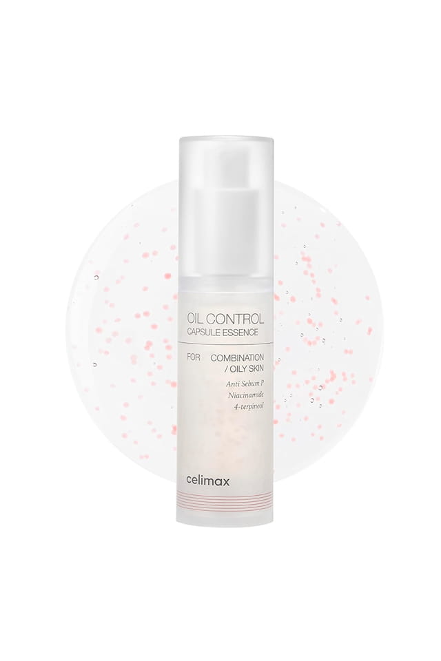 - Esta esencia cápsula de control de aceite ayuda a reducir la producción excesiva de sebo y los puntos negros.